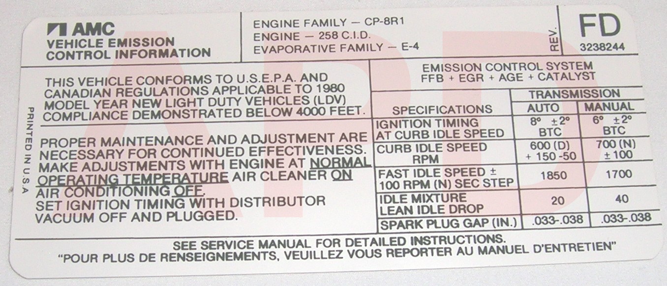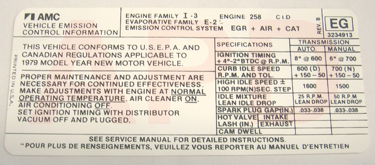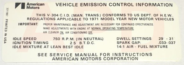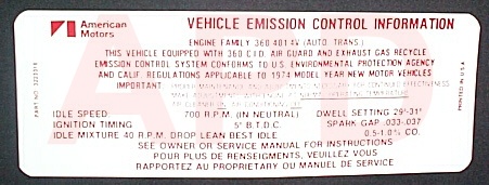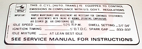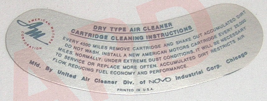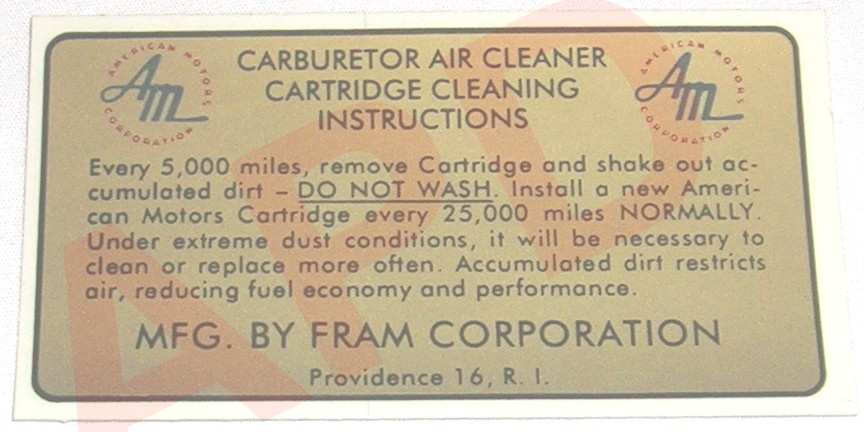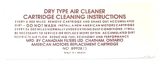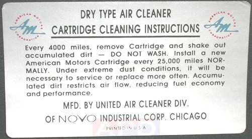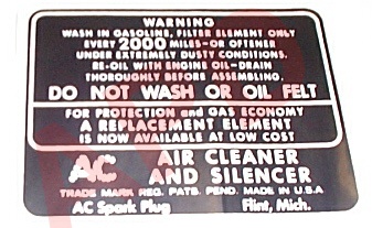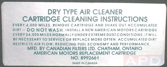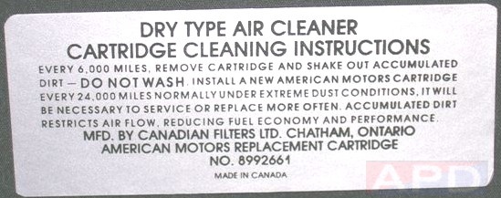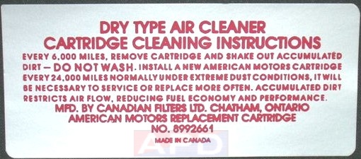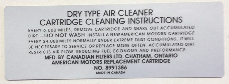 Air Cleaner Engine I.D. Sticker