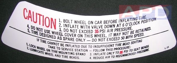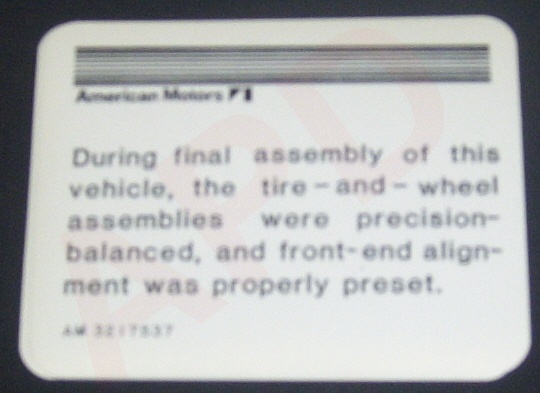 Alignment Sticker (Found on right hand inner wheelhouse.)