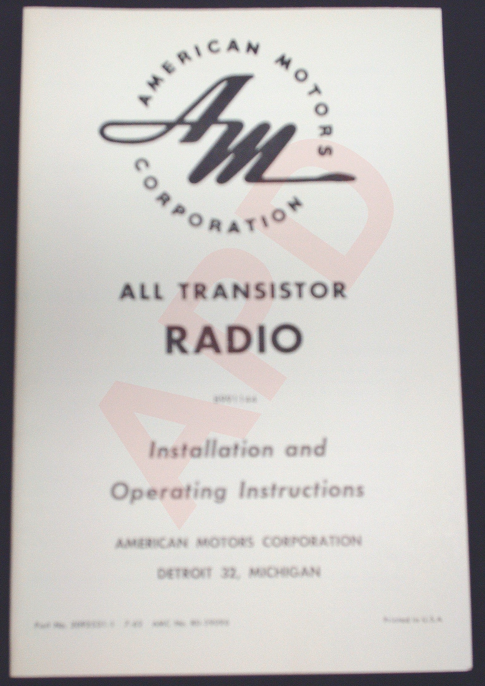 of AMC catalog F-14072 R3 issued June 1972. Complete with illustrated